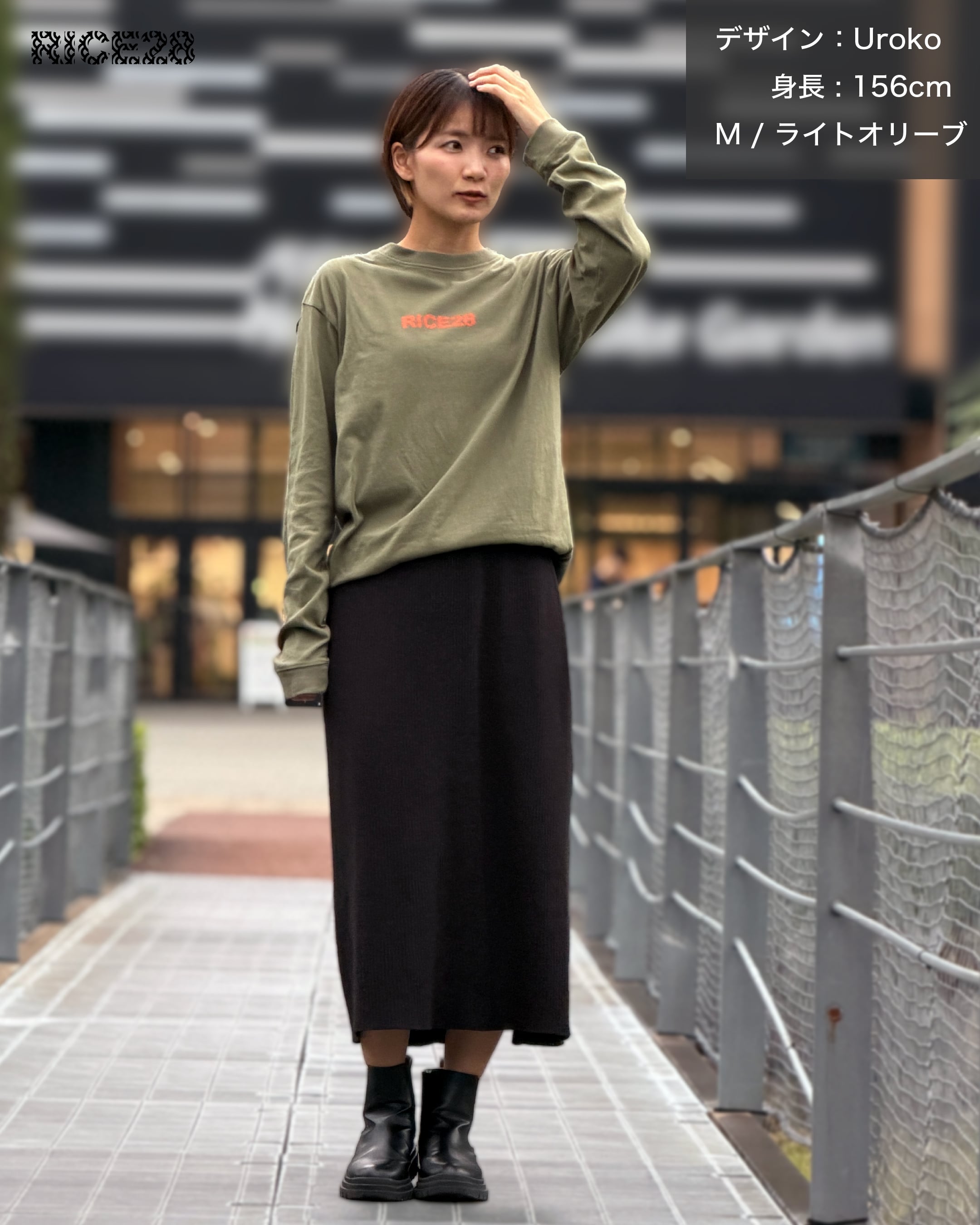 2025 RICE28 Uroko long T-shirt ライトオリーブ